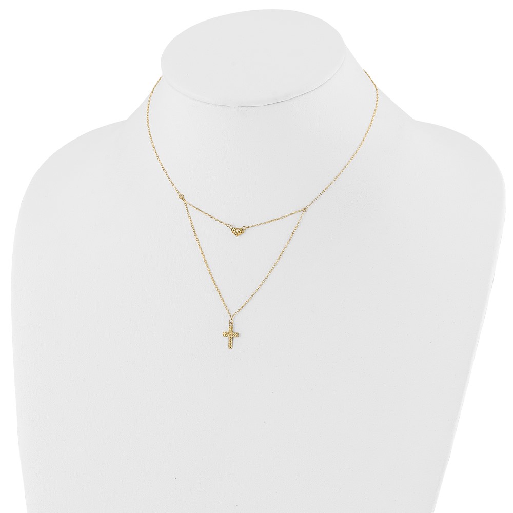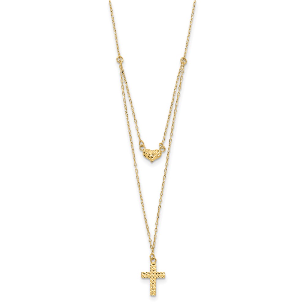 | Fine Jewelry | 14k Polished 2-Strand D/C Cross & Heart w/2in. Ext. Necklace