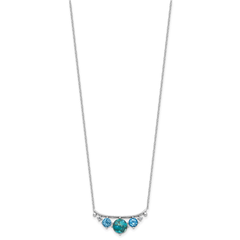| Fine Jewelry | Sterling Silver RH-pl Multi Color CZ Reconstituted Turq. w/2in ext Necklac
