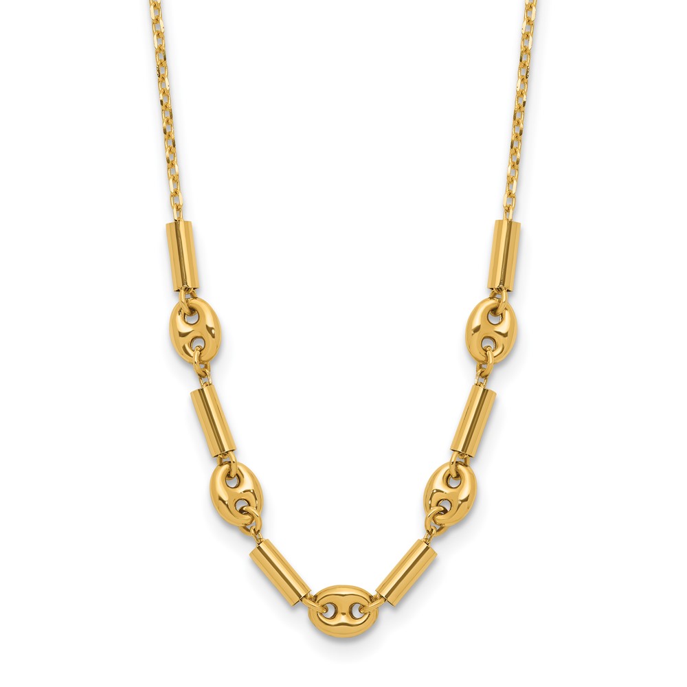 14K Polished Fancy Link Beaded Necklace (SF3066-18)