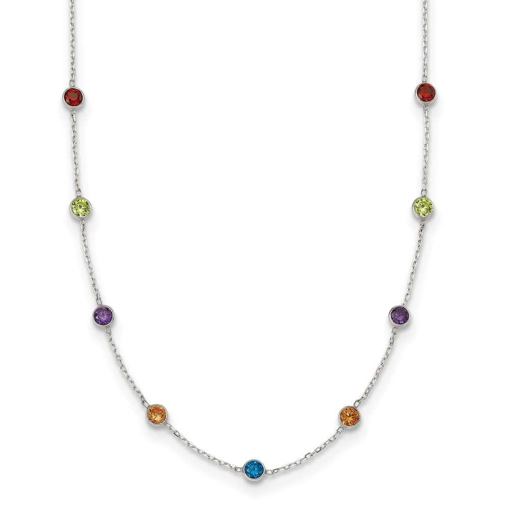 Sterling Silver 9-Station Multicolor CZ Necklace (QG2654-18)
