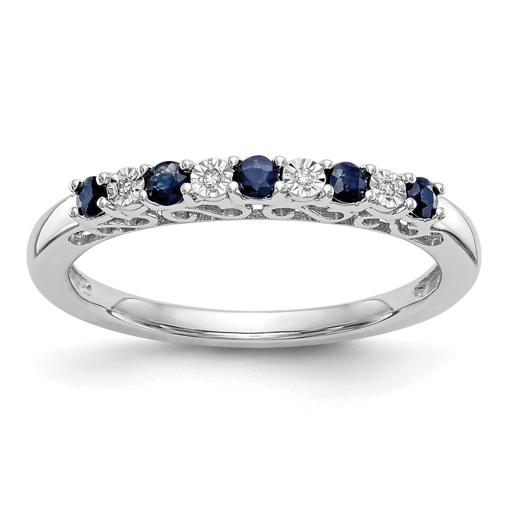 14k White Gold .01 carat Diamond and Blue Sapphire Complete Band