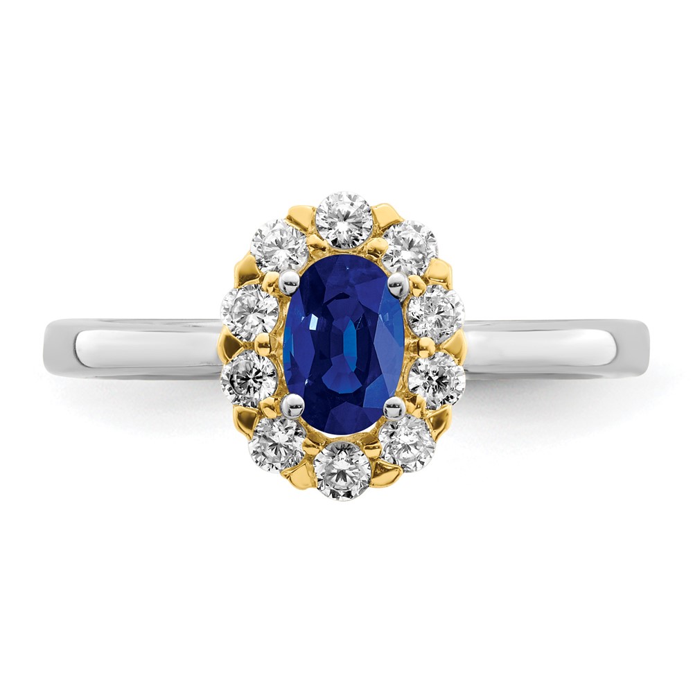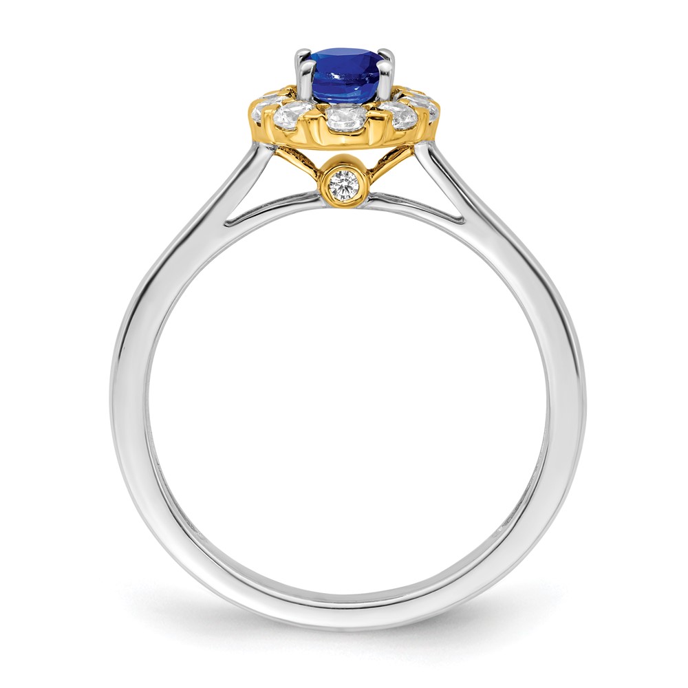 14k Two-Tone 5/8 carat Lab Grown Diamond VS/SI+ G+ and Oval Lab Created Blue Sapphire Halo Fashion Ring (RM6990-CS-100-WYALG)
