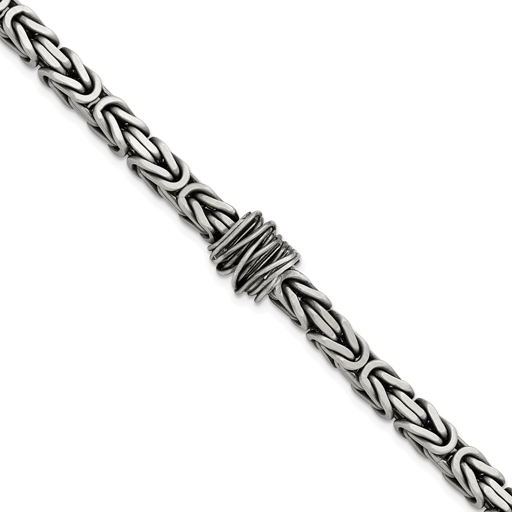 Sterling Silver Mens Antiqued Brushed Square Byzantine Bracelet (QG5739-8.5)