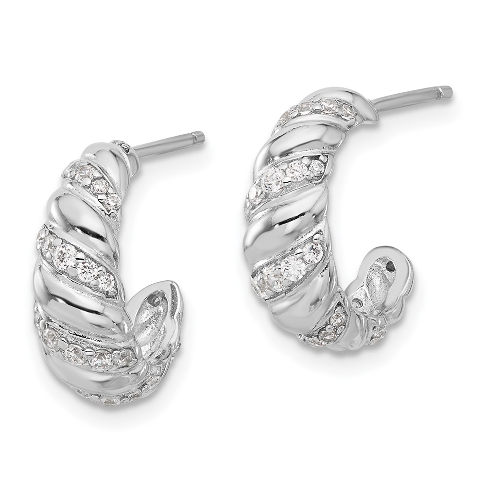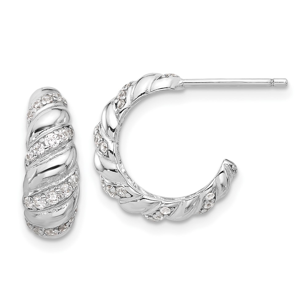 Sterling Silver Rhodium-plated CZ Post Hoop Earrings (QE17168)