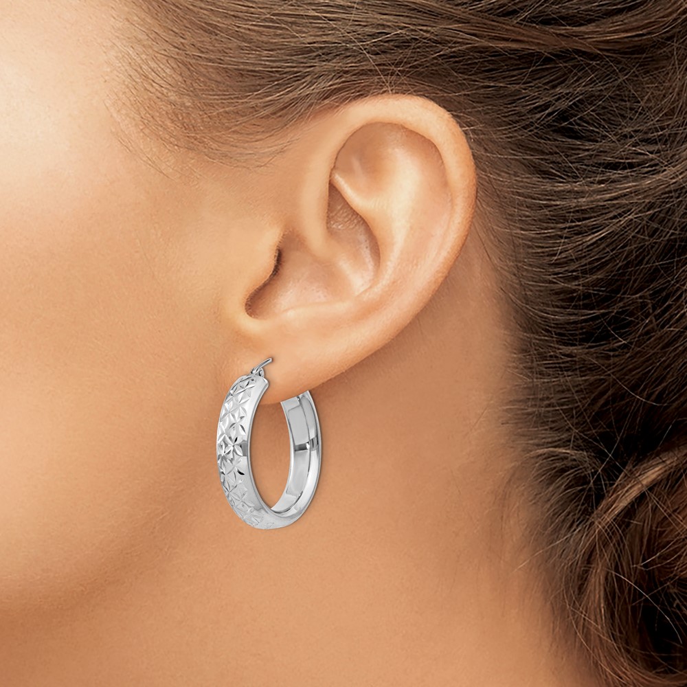 | Fine Jewelry | Sterling Silver Rhodium-plated Diamond Cut 5mm Hoop Earrings