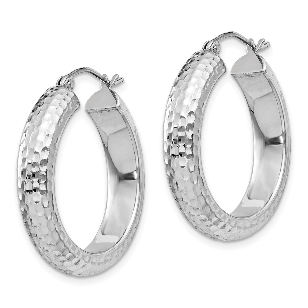 Sterling Silver Rhodium-plated Diamond-cut 5x25mm Hoop Earrings (QE8358)