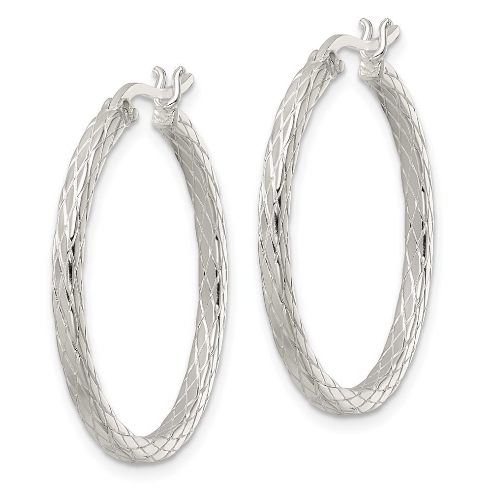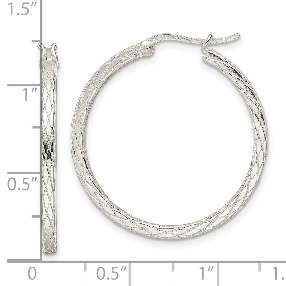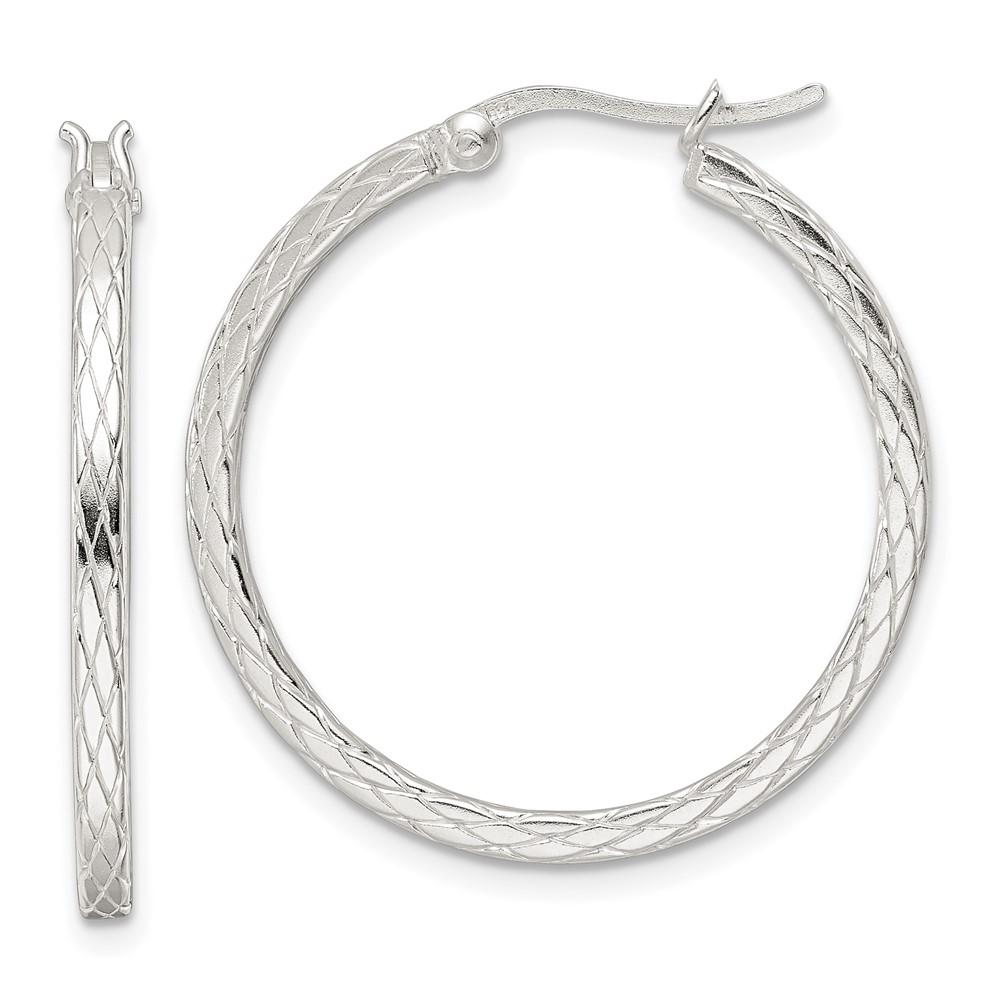 Sterling Silver Rhodium-plated Diamond Pattern Hoop Earrings (QE15846)
