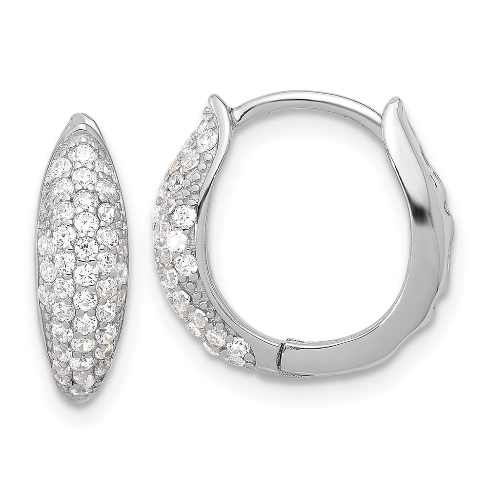 Sterling Silver Rhodium-plated Pavé CZ Hinged Huggie Hoop Earrings (QE17205)