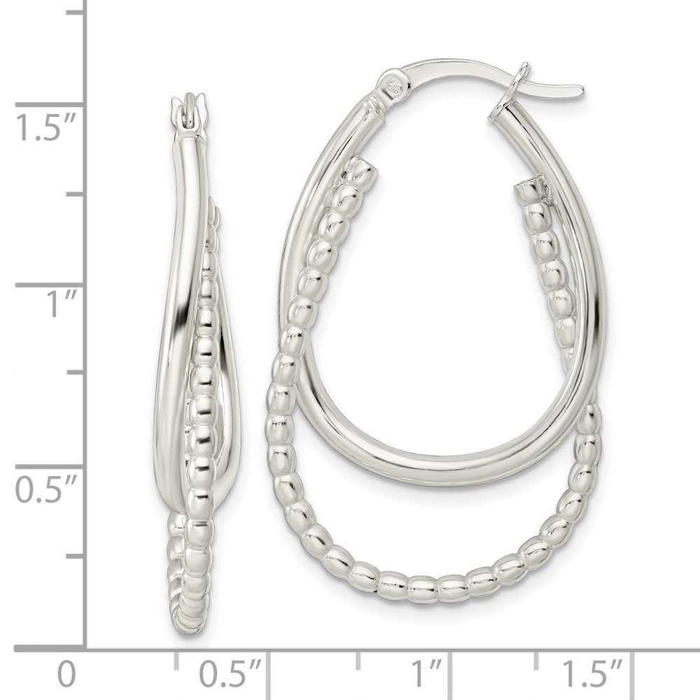 Sterling Silver Rhodium-plated Polished Double Oval Hoop Earrings (QE15894)