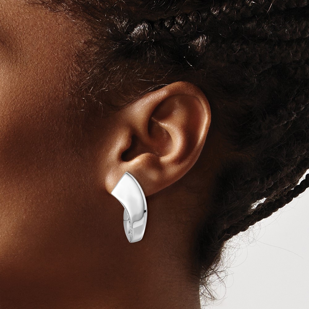 Sterling Silver Rhodium-plated Polished Fancy CZ Hoop Earrings (QE17173)