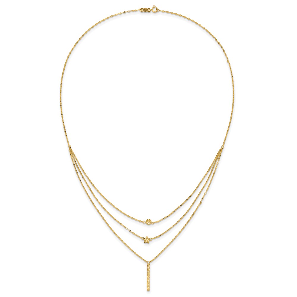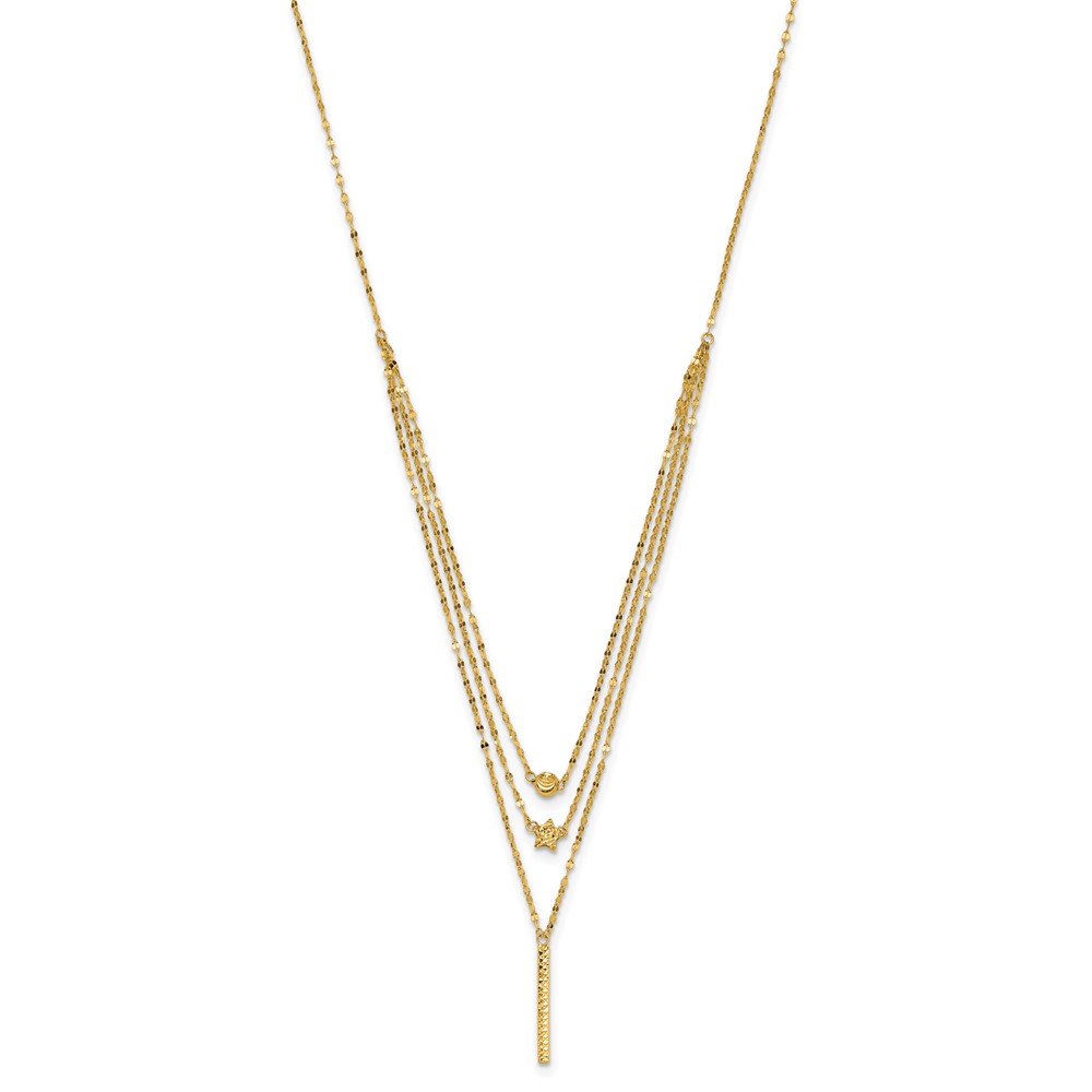 | Fine Jewelry | 14K Three Layer D/C Bead/Star/Bar Necklace