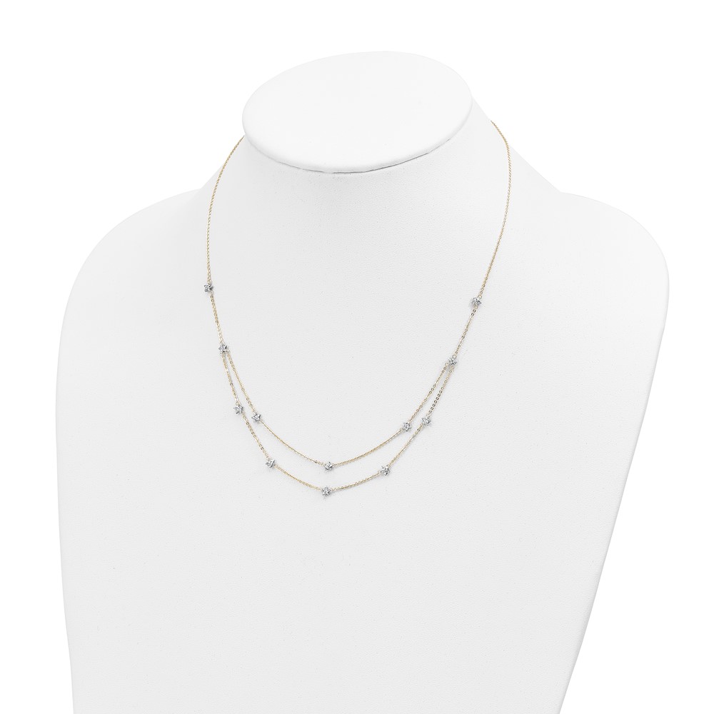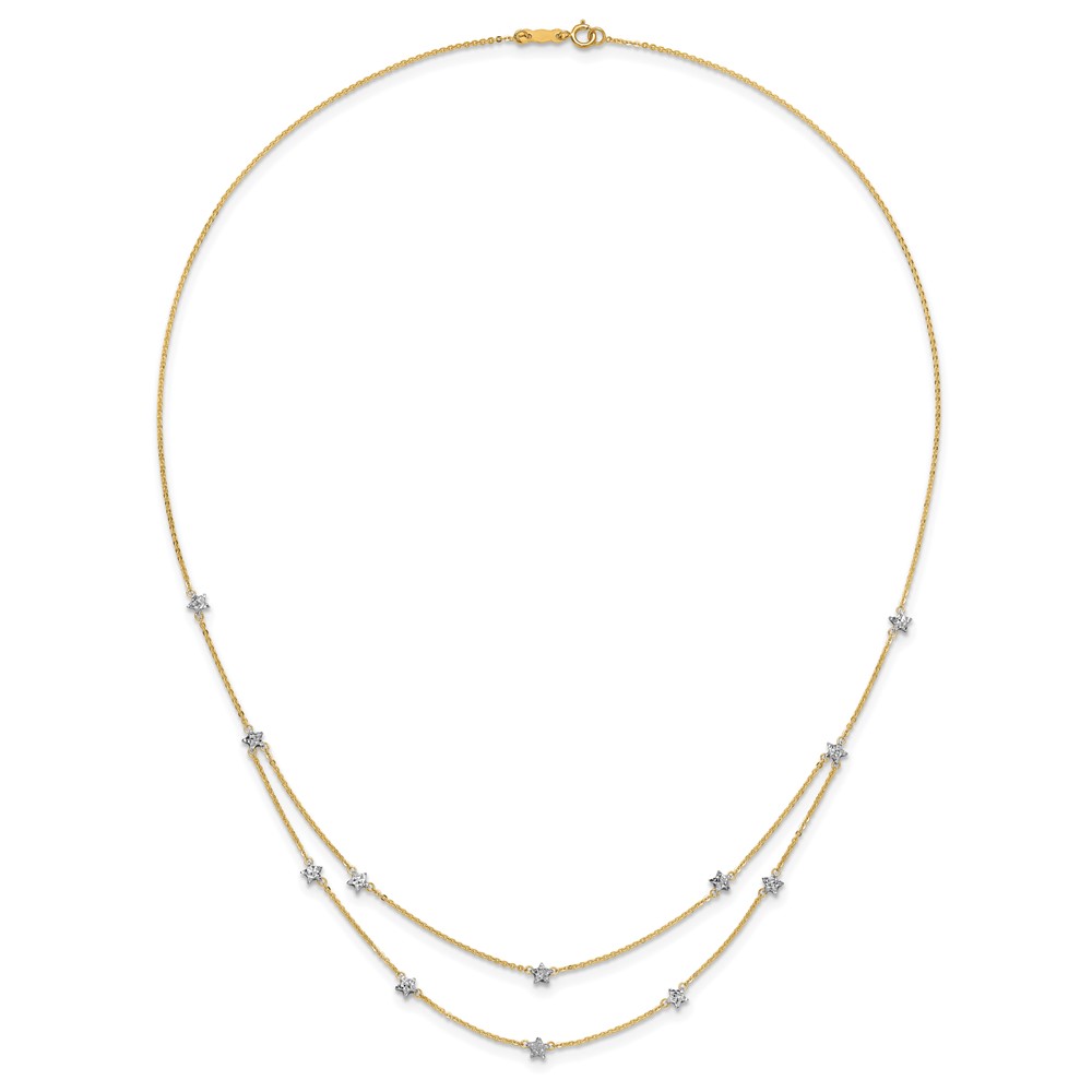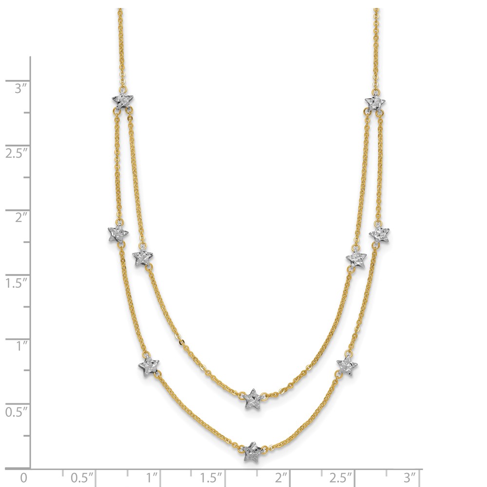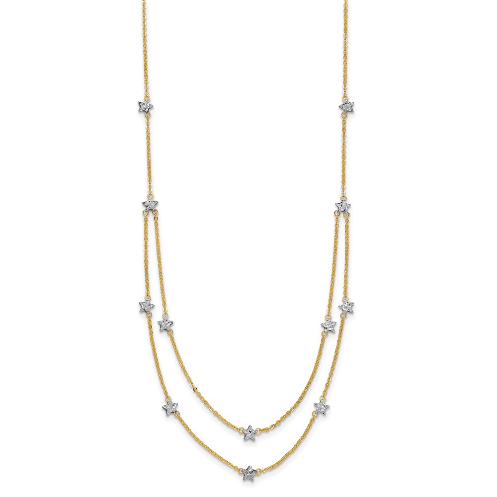 14K Two-tone Double Chain Textured Stars 18 inch Necklace