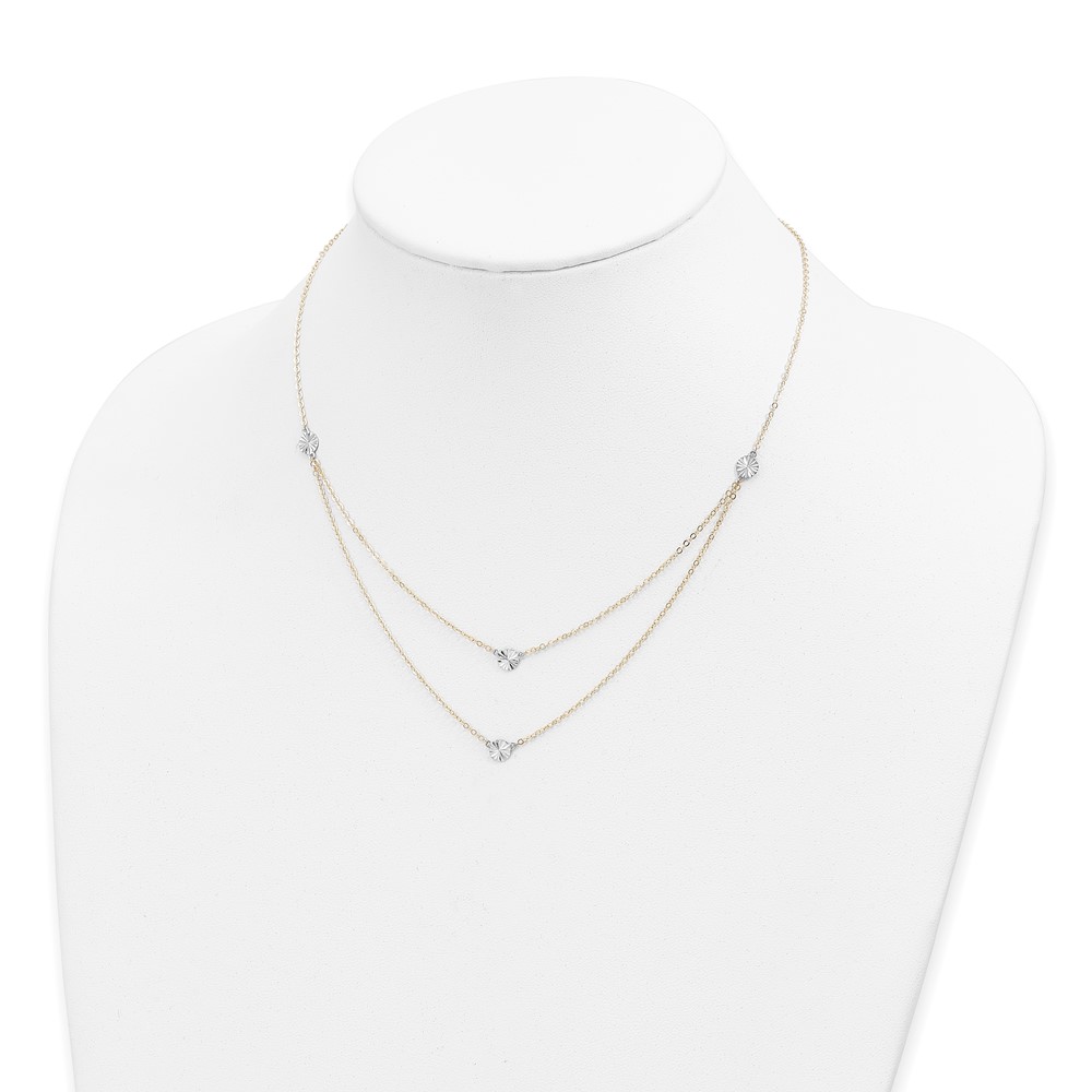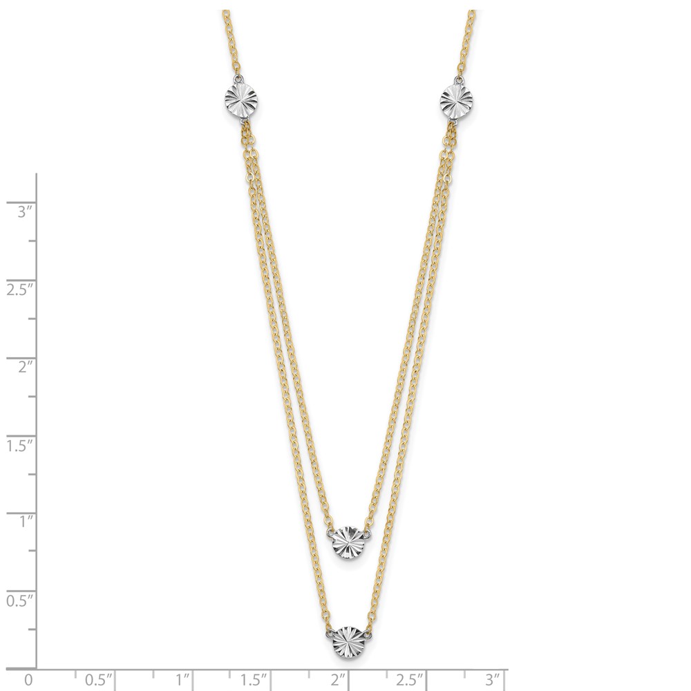 14K Two-tone Polished Diamond-cut Discs Double Layer 17 inch Necklace (SF2949-17)