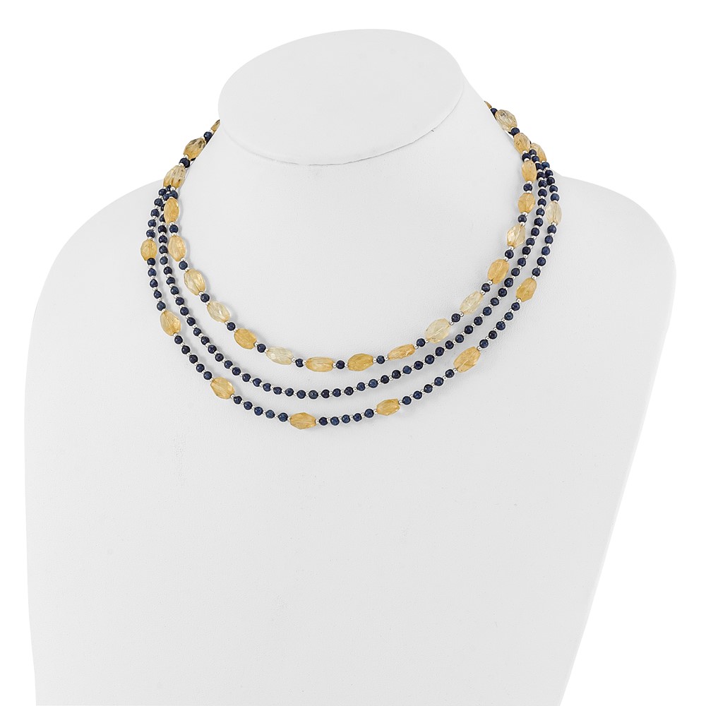 | Fine Jewelry | Sterling Silver Blue Agate/Citrine 3-Strand 16.5in w/2in ext Necklace