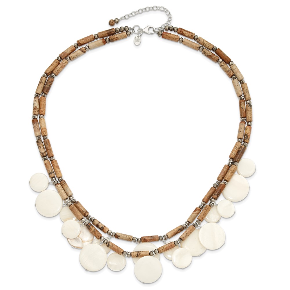 | Fine Jewelry | Sterling Silver Jasper, MOP, Crystal w/2in ext Necklace