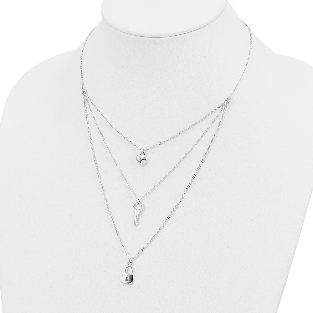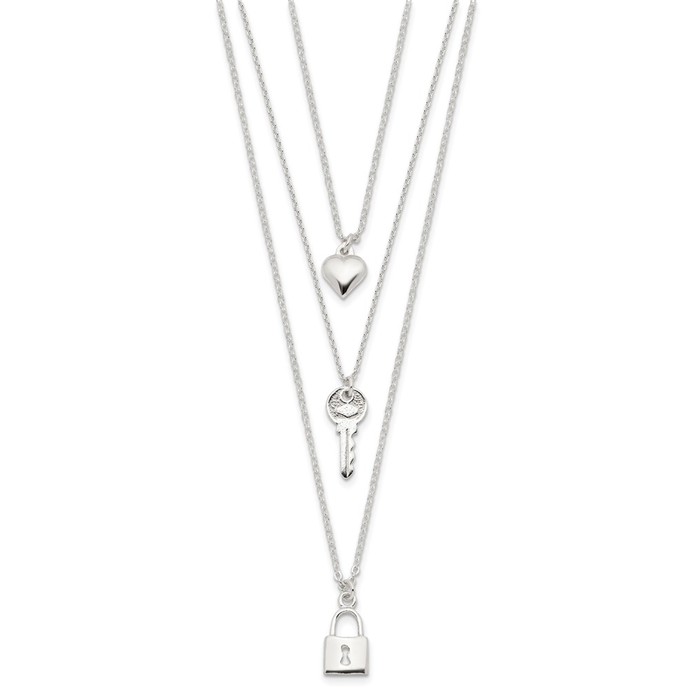 | Fine Jewelry | Sterling Silver Lock, Heart and Key Multi-Strand 16in Necklace