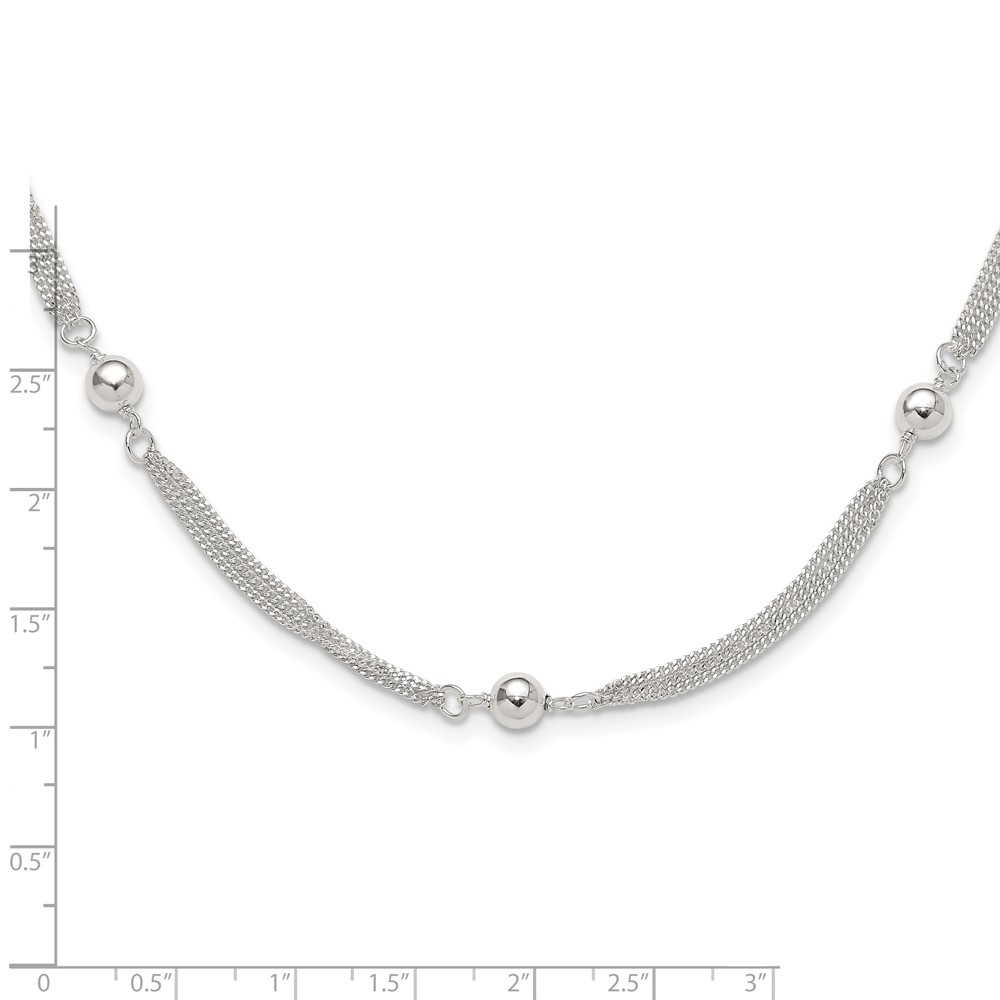Sterling Silver Polished Multi-strand Beaded 18in Necklace (QG6534-18)