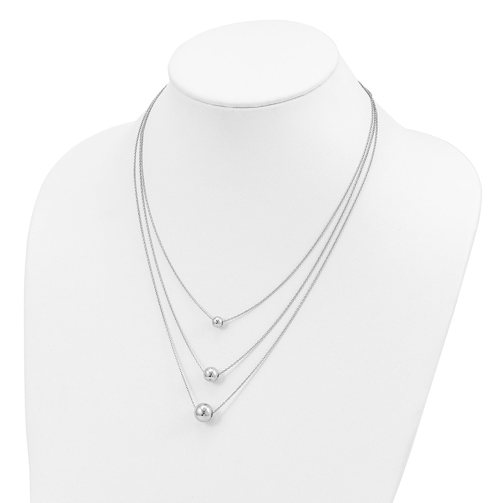 Sterling Silver Rhodium-plated 3-Strand w/2in ext. Polished Necklace (QG4338-16)
