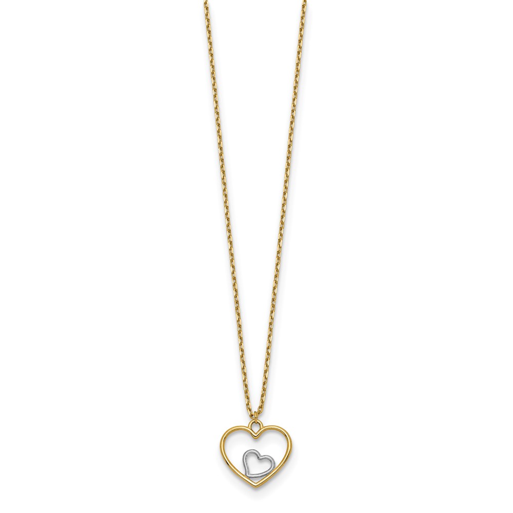 14k with White Rhodium Heart in Heart Pendant 18 inch Necklace (SF2882-18)