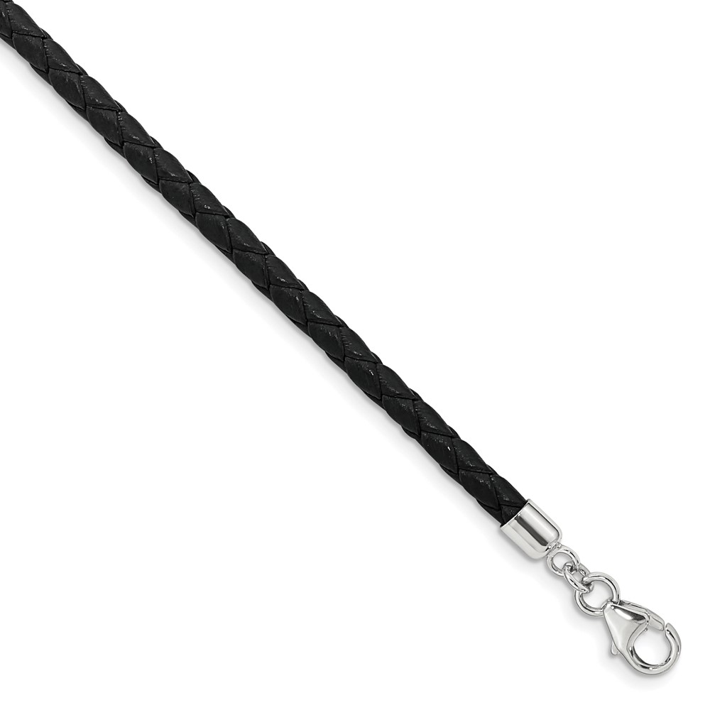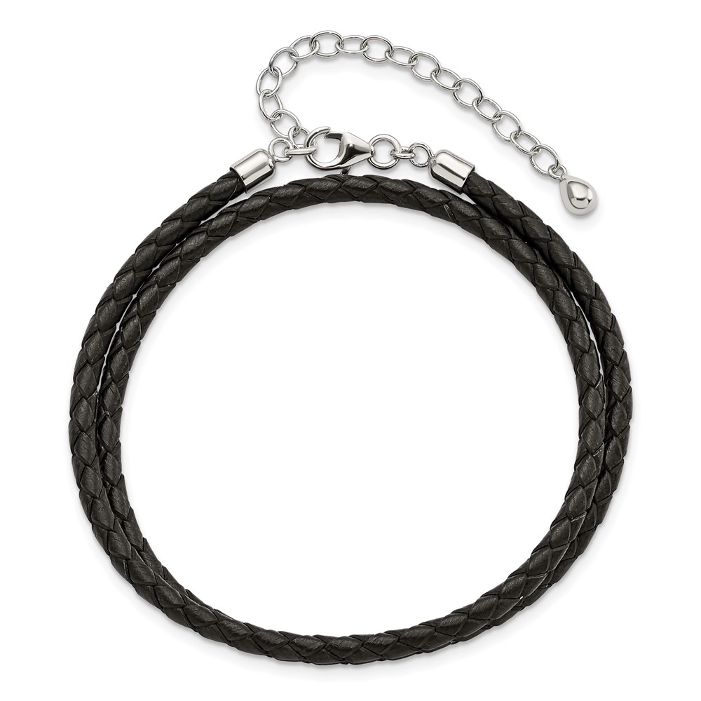 SS Reflections Black Leather Rh-plated 14in w/2in ext Choker/Wrap Bracelet