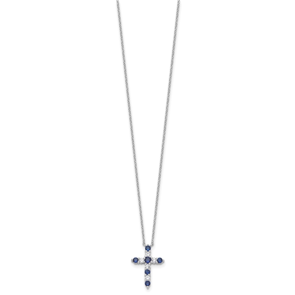 | Fine Jewelry | SS RH-plated Dark Blue CZ Sept Birthstone Cross w/2in ext Necklace