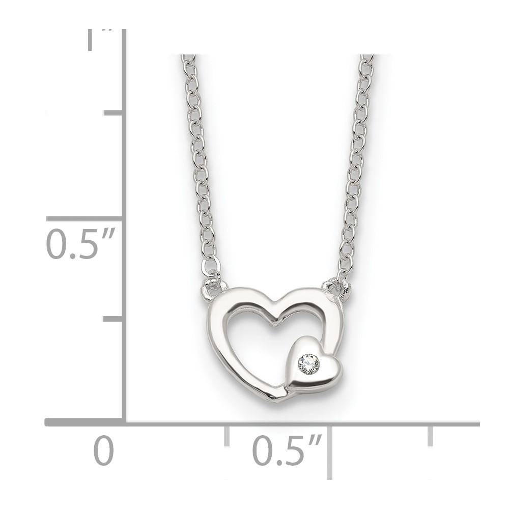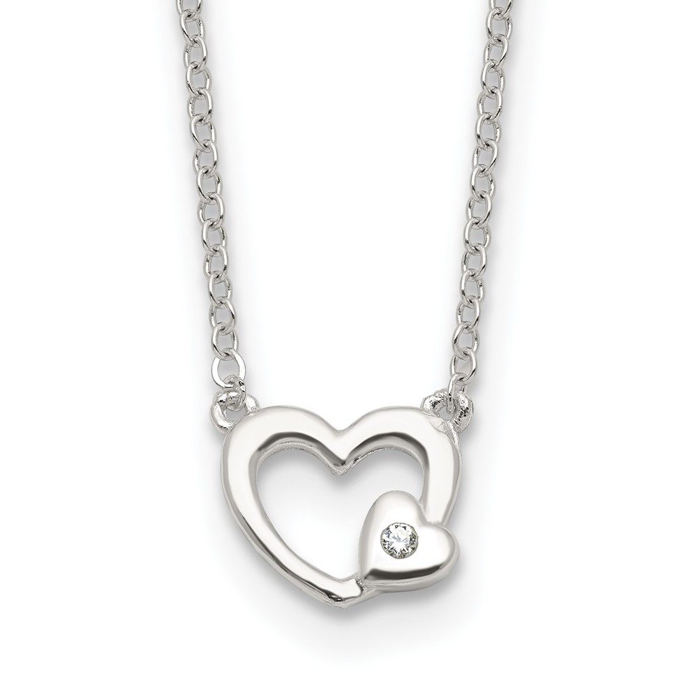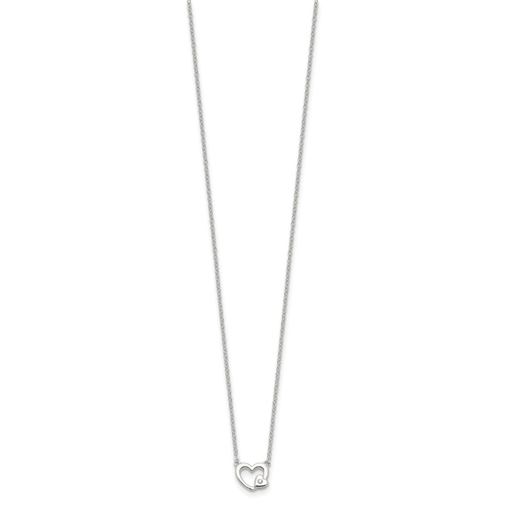 Sterling Silver E-Coating CZ Heart 16in w/2in ext Necklace (QG6751-16)