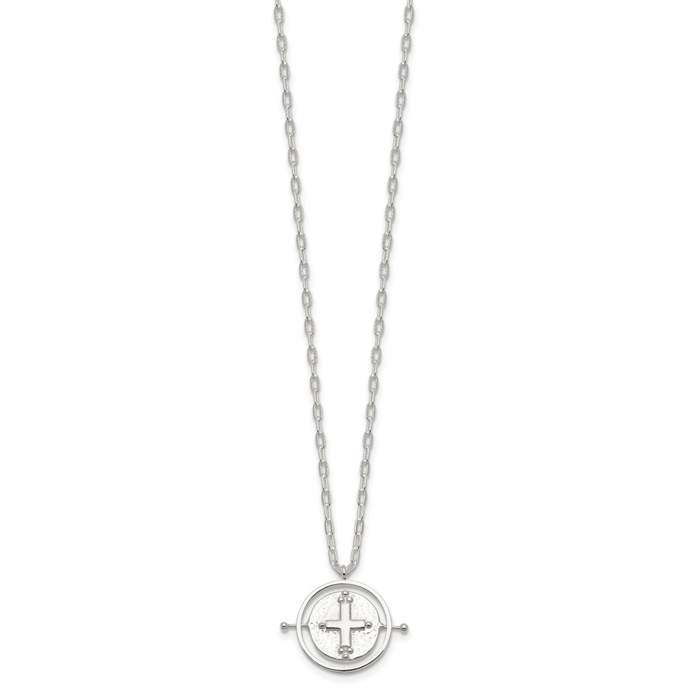 Sterling Silver E-Coating Movable/Spin Cross 16in w/2in ext Necklace (QG6570-16)