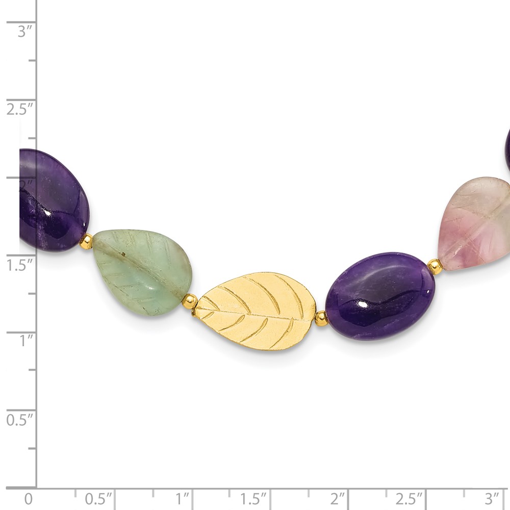 Sterling Silver Gold-plated Amethyst/Fluorite/Jade 2in ext. Necklace (QH5673-18.5)