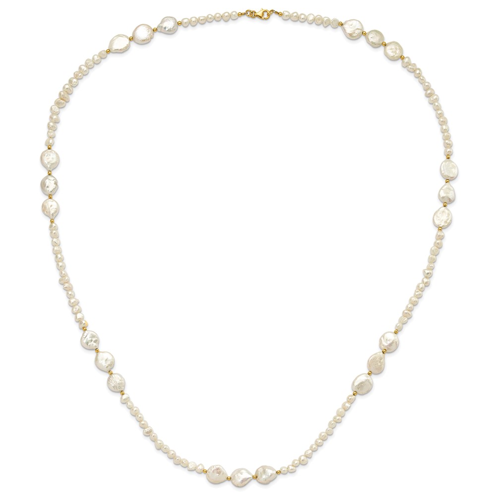 Sterling Silver Gold-plated Flat Round FWC Pearl 35in Necklace (QH5699-35)