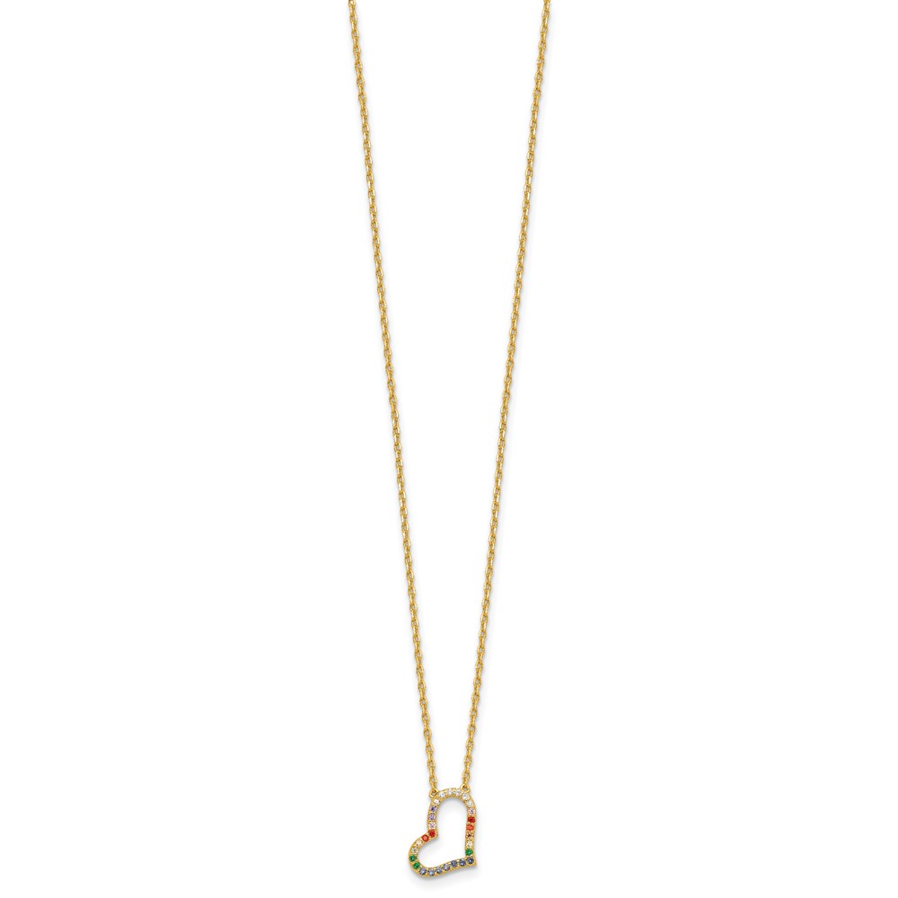 | Fine Jewelry | Sterling Silver Gold-tone CZ Glass Heart w/2in ext Necklace