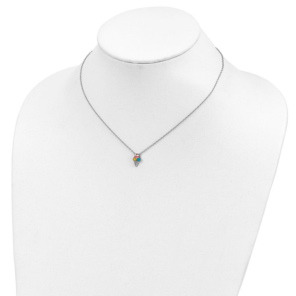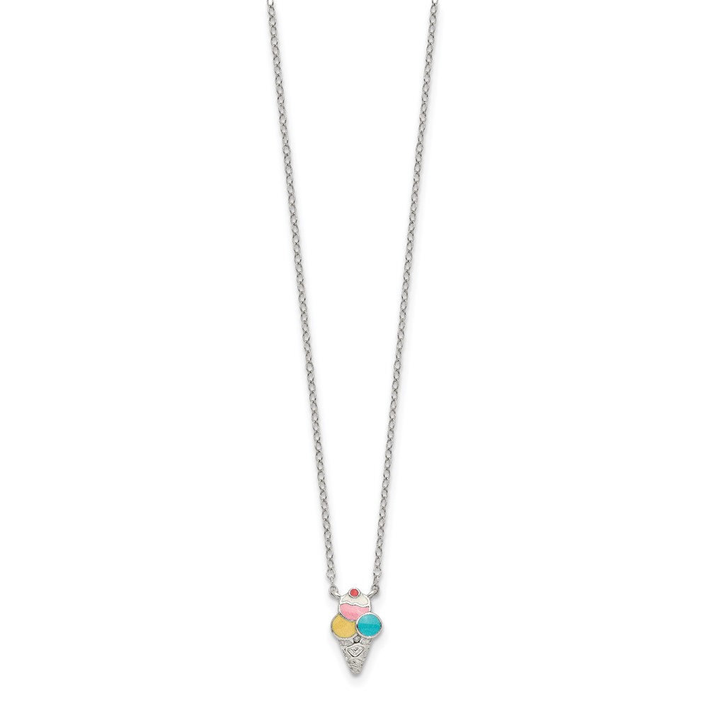 | Fine Jewelry | Sterling Silver Polished & Textured Multi-color Enameled Ice Cream Cone with 2 Inch Extension Children's Necklace