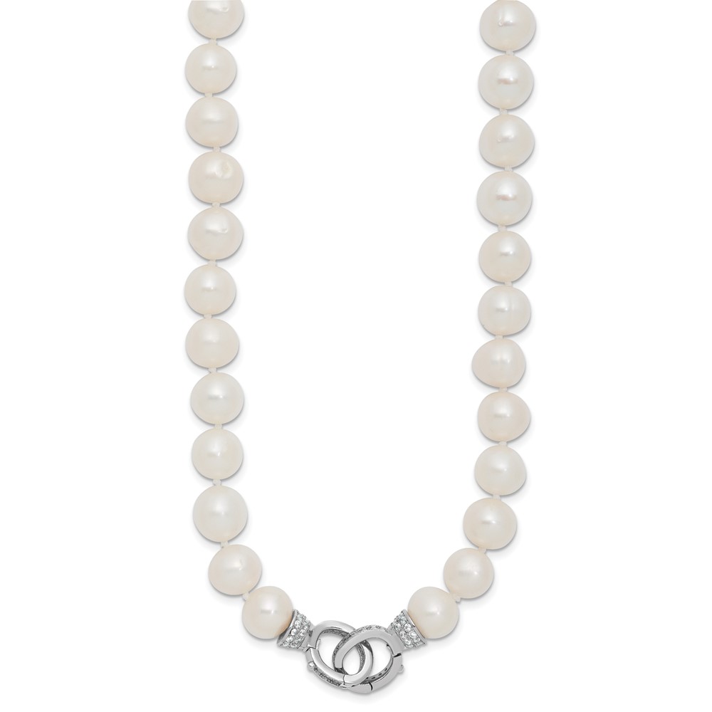 | Fine Jewelry | Sterling Silver RH 9-10mm White FWC Pearl CZ Clasp Adjust. Necklace