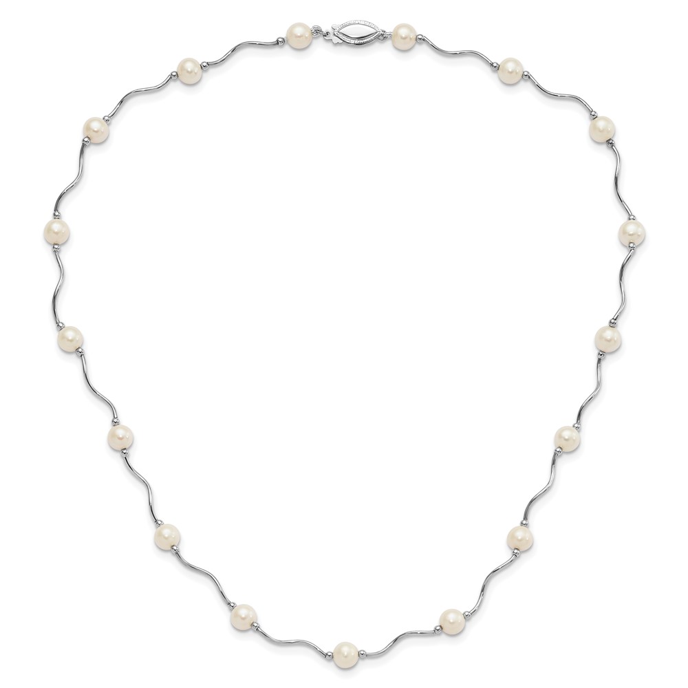 Sterling Silver Rhodium-plated 6-7mm White Near-Round Freshwater Cultured Pearl 18-Station 18 inch Necklace (QH4731-18)