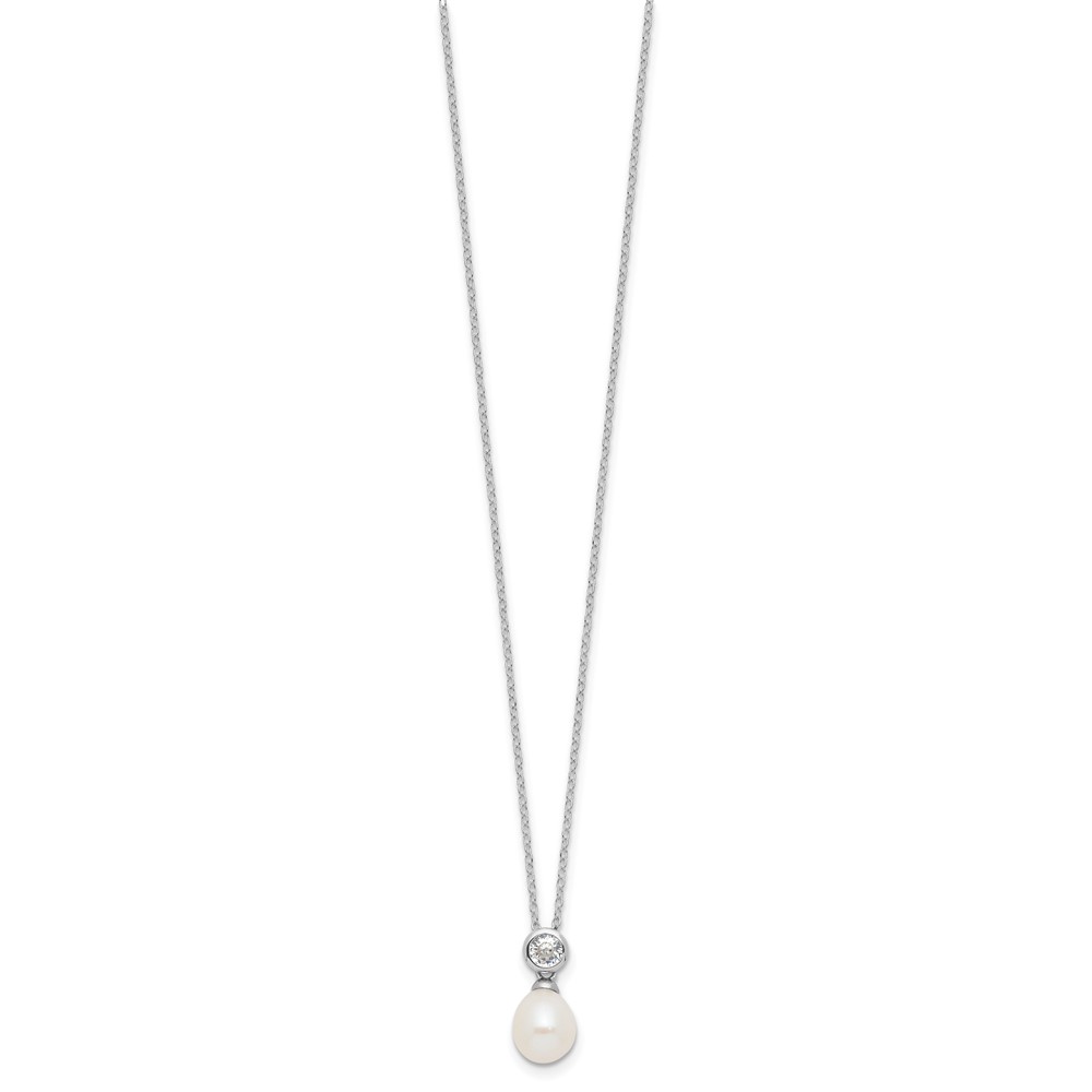 | Fine Jewelry | Sterling Silver RH-plated 7-8mm White Rice FWC Pearl/CZ 17in Necklace