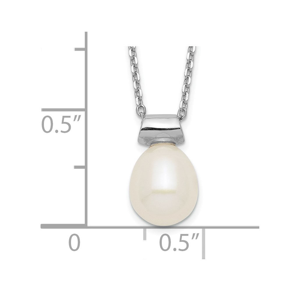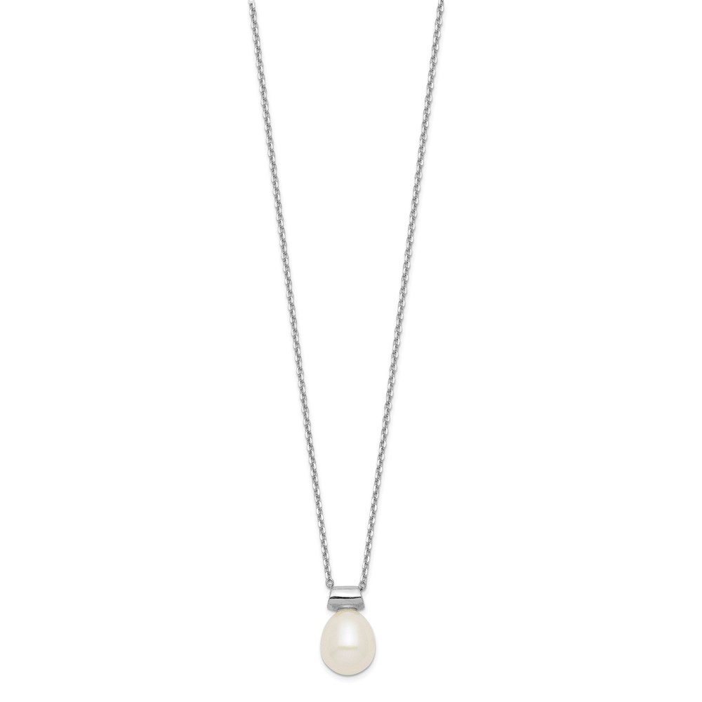 Sterling Silver Rhodium-plated 7-7.5mm White Rice Freshwater Cultured Pearl 16 inch with 1.5 inch Extension Necklace (QH5473-16)