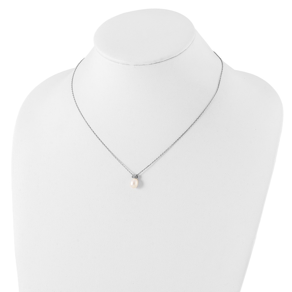 Sterling Silver Rhodium-plated 7-7.5mm White Rice Freshwater Cultured Pearl 16 inch with 1.5 inch Extension Necklace