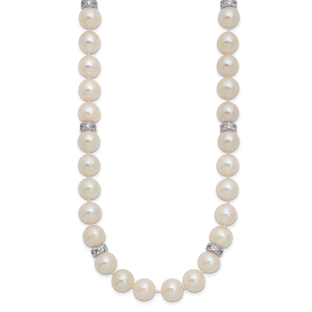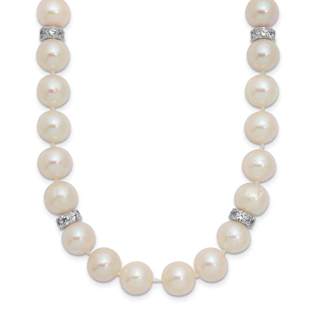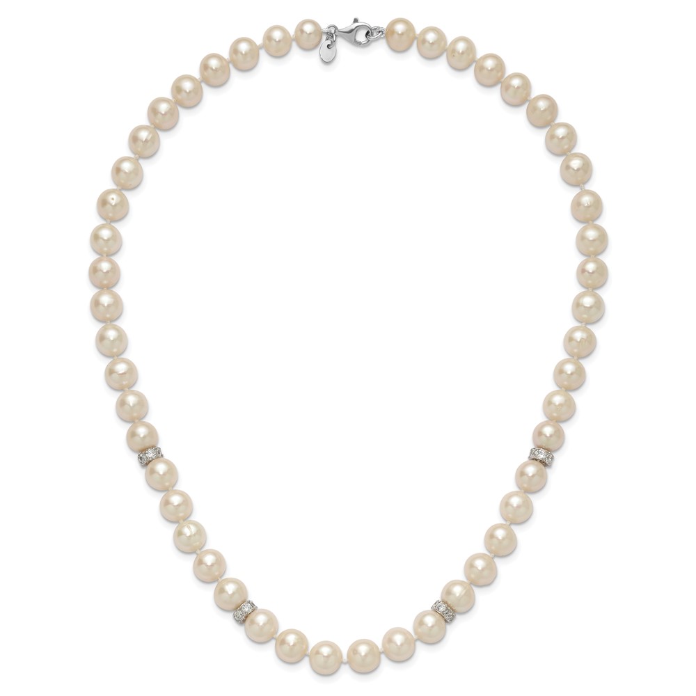 | Fine Jewelry | Sterling Silver Rhod-plat 9-10mm White Near Round FWC Pearl CZ Necklace