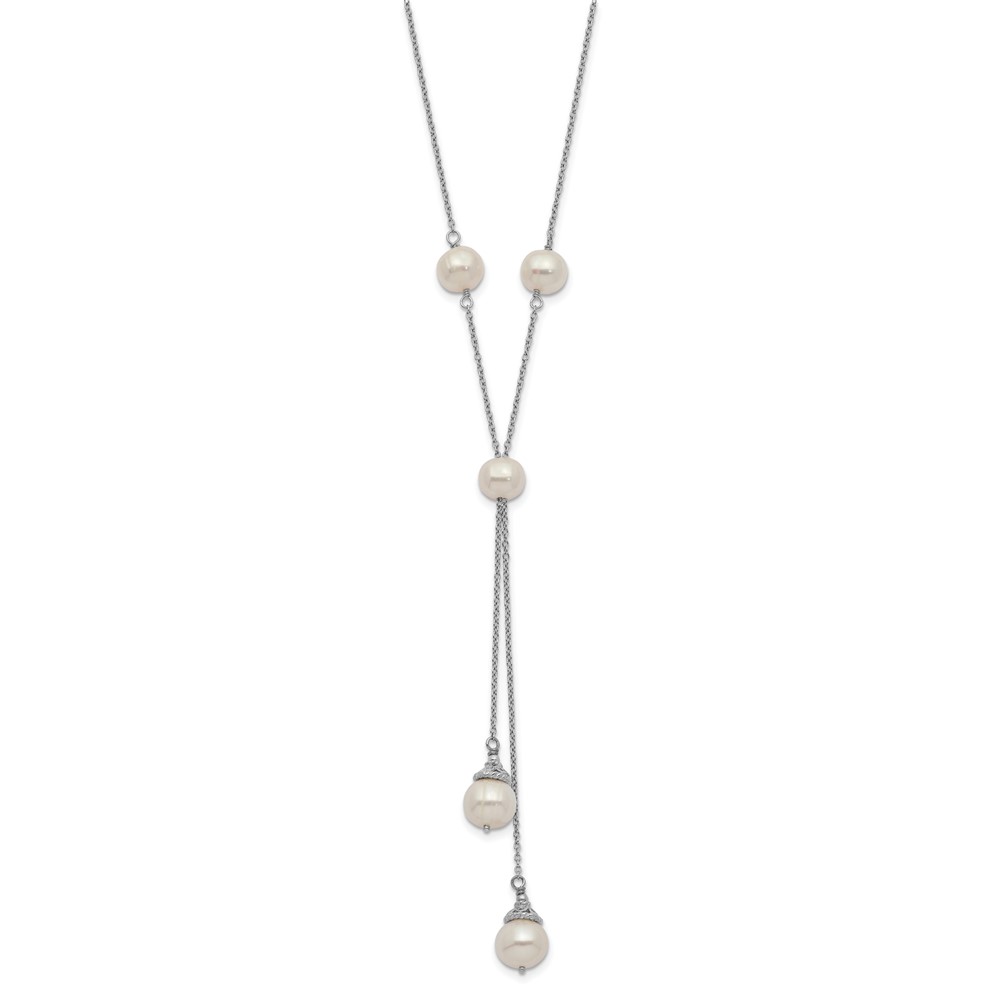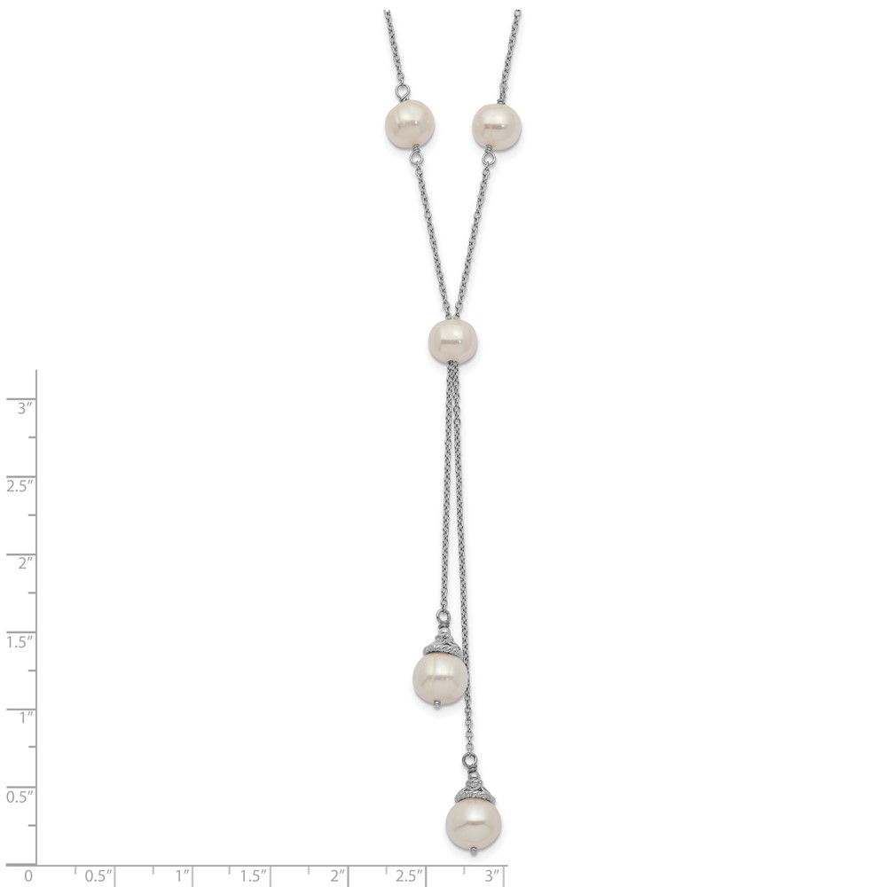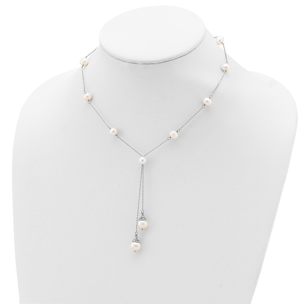 | Fine Jewelry | Sterling Silver Rhod-plat White FWC Pearl 9 station 2 drop 2in ext Necklace