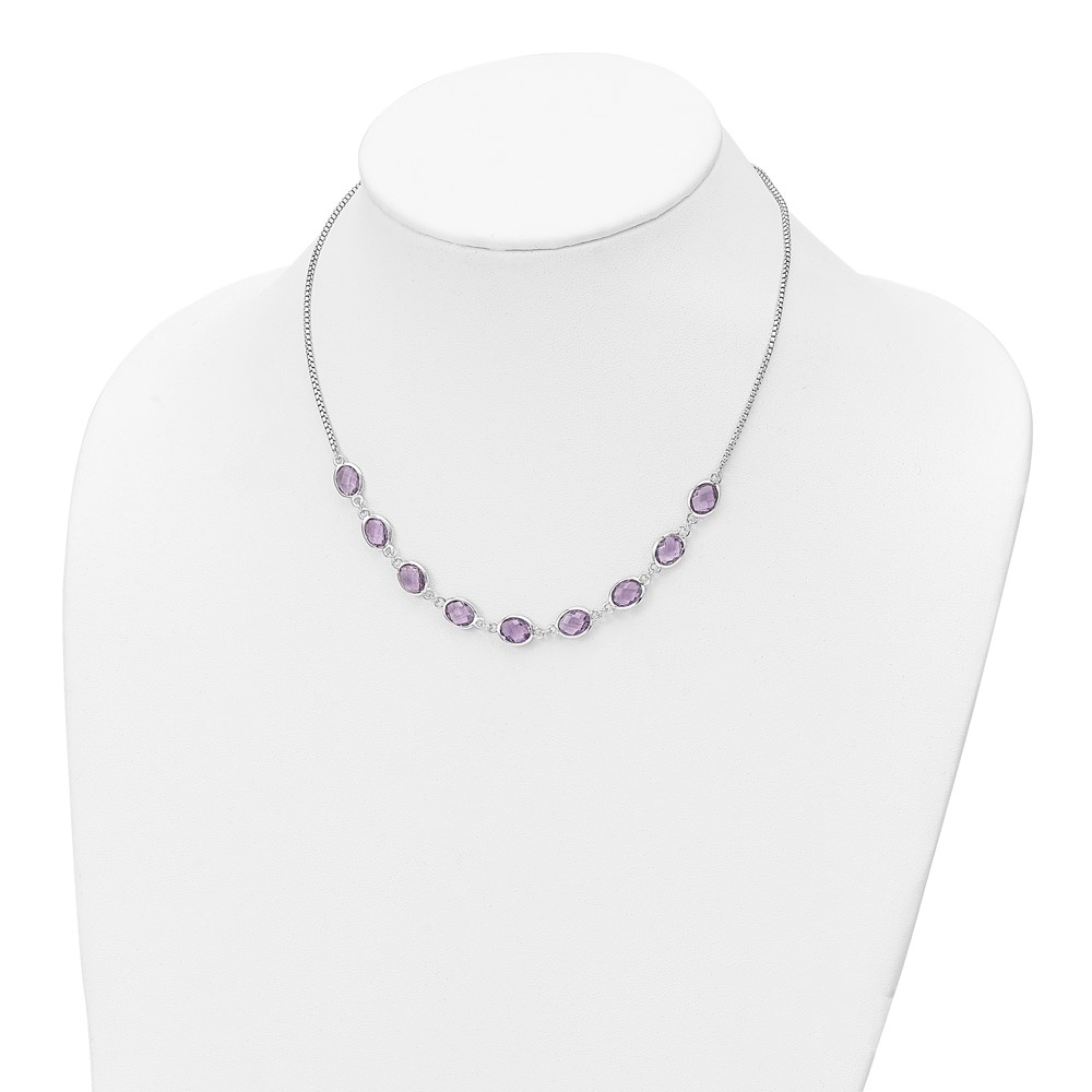 Sterling Silver Rhod-plated 13.5AM Amethyst w/2 in ext. Necklace (QG6223AM-17)
