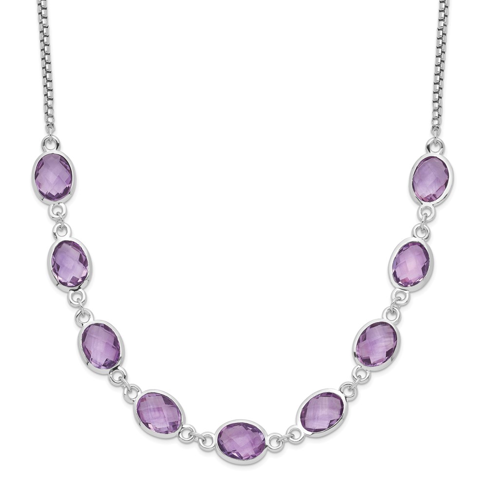 | Fine Jewelry | Sterling Silver Rhod-plated 13.5AM Amethyst w/2 in ext. Necklace