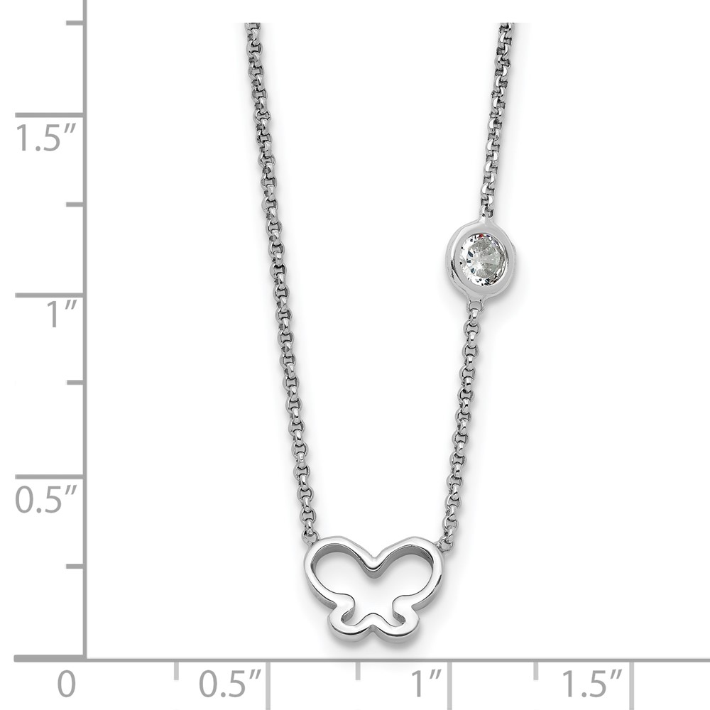 Sterling Silver Rhod-plated CZ & Butterfly w/ 2in Ext. Children's Necklace (QG6735-16)