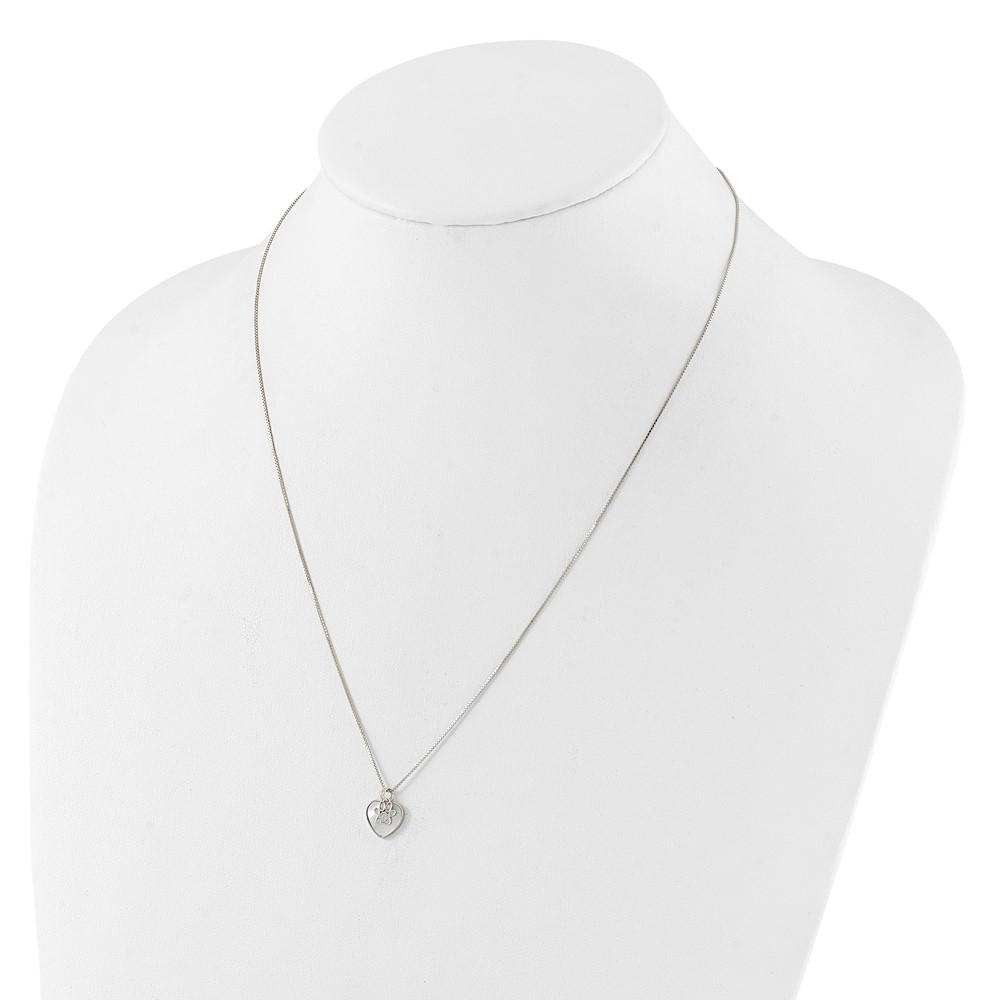 Sterling Silver Rhod-plated MOP/CZ Paw w/2IN Ext Necklace (QG6684-18)