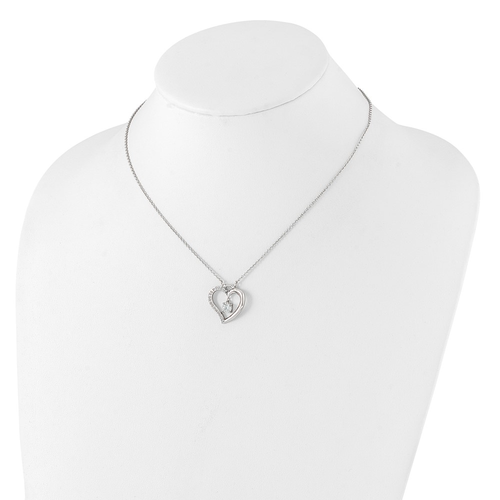 Sterling Silver Rhod-plated Polished CZ Open Heart w/1.25in Ext Necklace (QG6602-16.5)