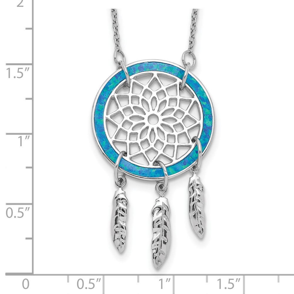 Sterling Silver Rhod-pltd Created Opal Dreamcatcher w/2in ext Necklace (QG5223-15.5)