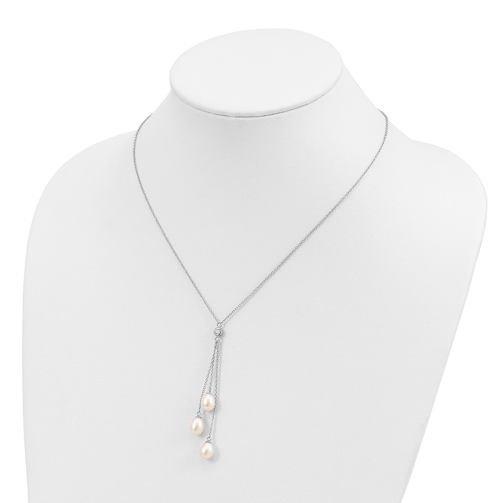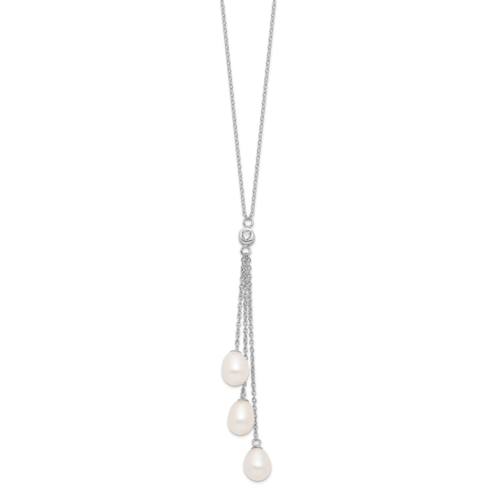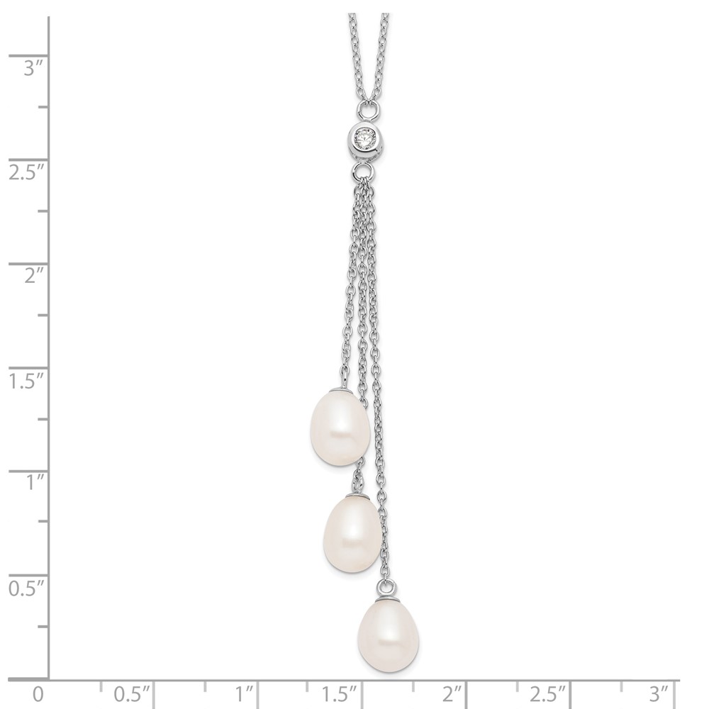 | Fine Jewelry | Sterling Silver Rhodium-plated 7-8mm White FWC Pearl CZ Drop Necklace