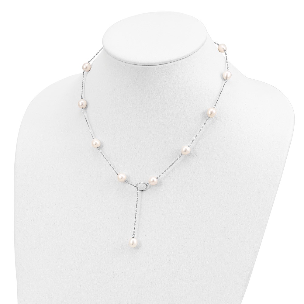| Fine Jewelry | Sterling Silver Rhodium-plated 7-8mm White FWC Pearl DropToggle Necklace