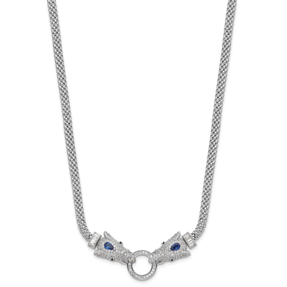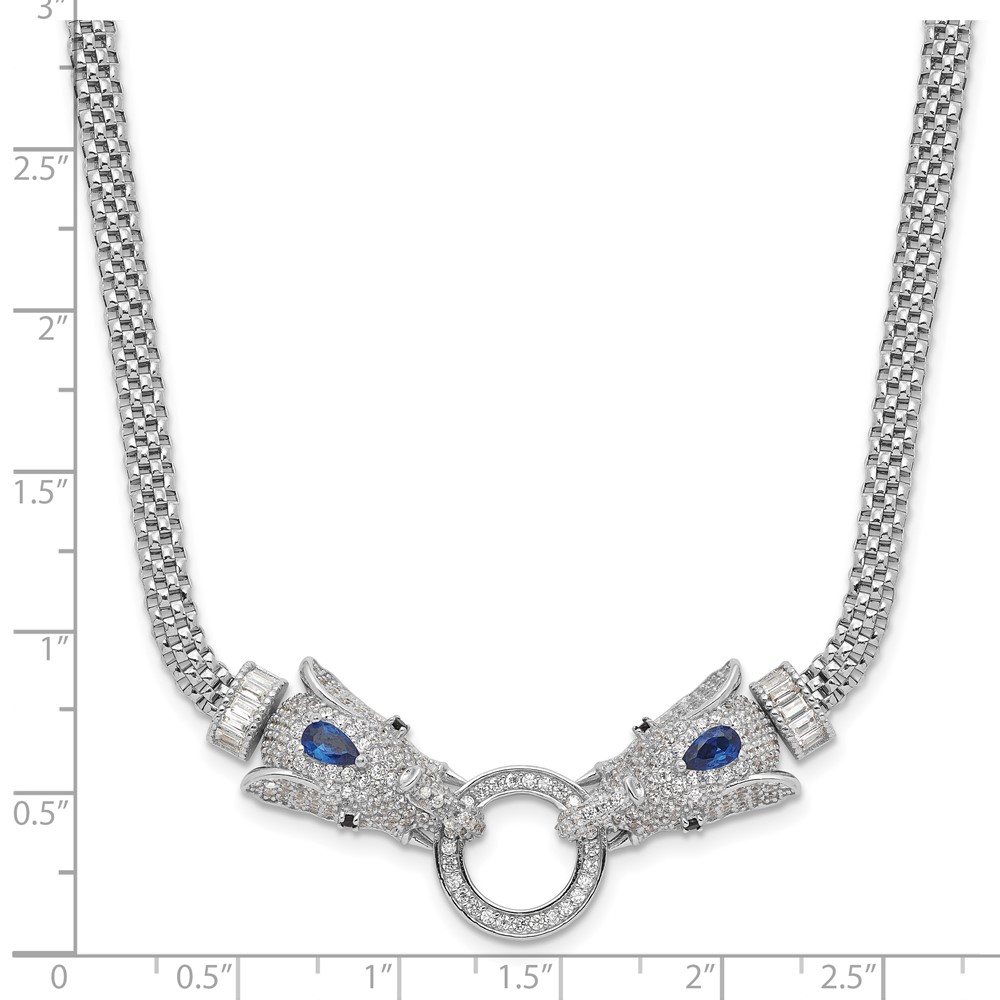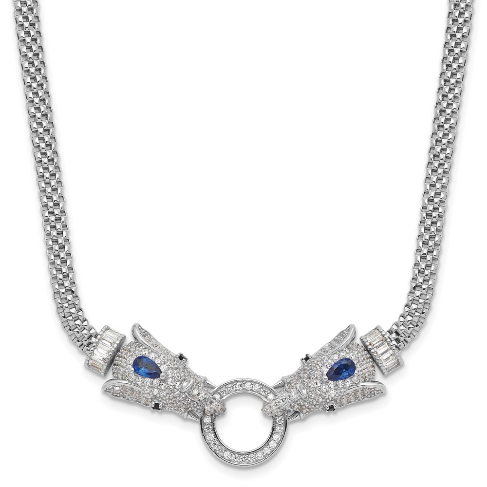 Sterling Silver Rhodium-plated Blue and Clear CZ Elephant Head Necklace (QG6519-18)