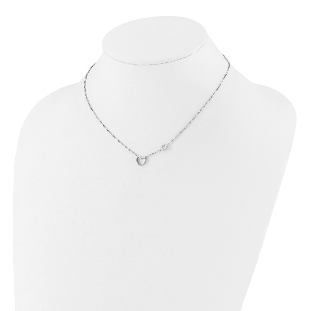 Sterling Silver Rhodium-plated CZ & Heart w/ 2in Ext. Children's Necklace (QG6732-16)