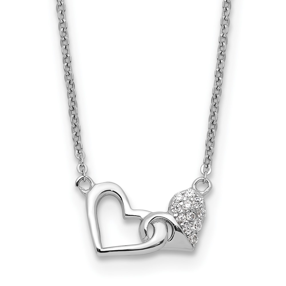 Sterling Silver Rhodium-plated CZ Double Heart 16IN Plus 2IN Ext Necklace (QG6750-16)