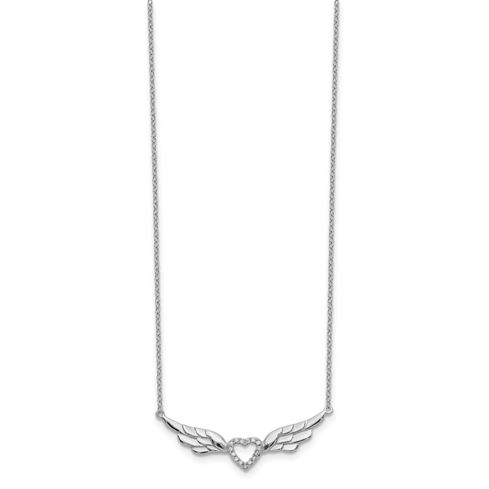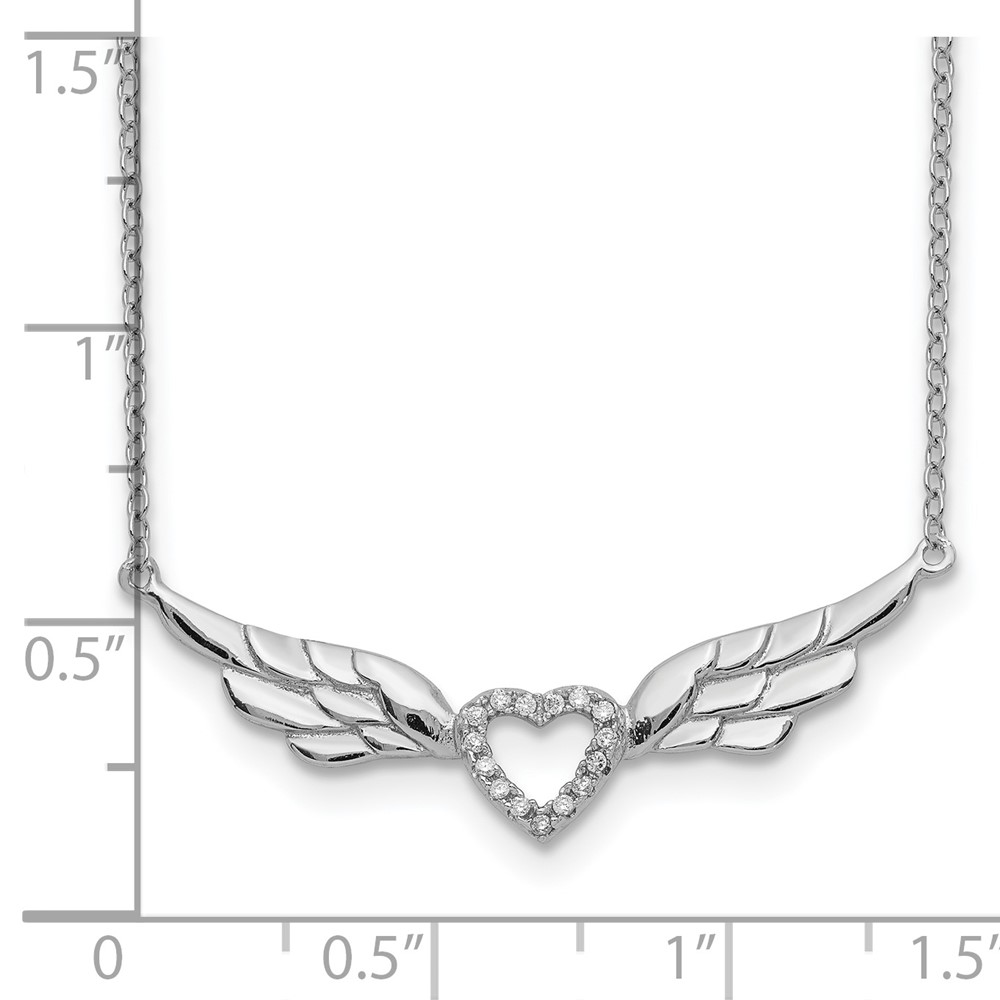 Sterling Silver Rhodium-plated CZ Heart with Wings 16 inch Necklace with 1 inch extension (QG5406-16)